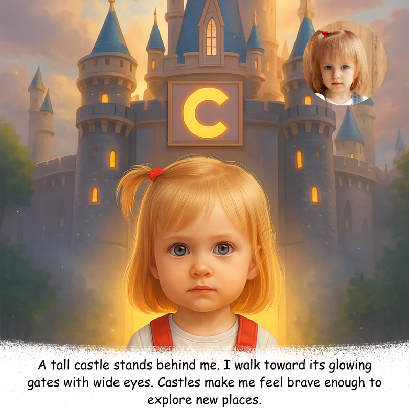 You simply upload your child’s photo and enter their name. We transform their face, skin tone, and hairstyle into a beautifully illustrated version that appears throughout the story.