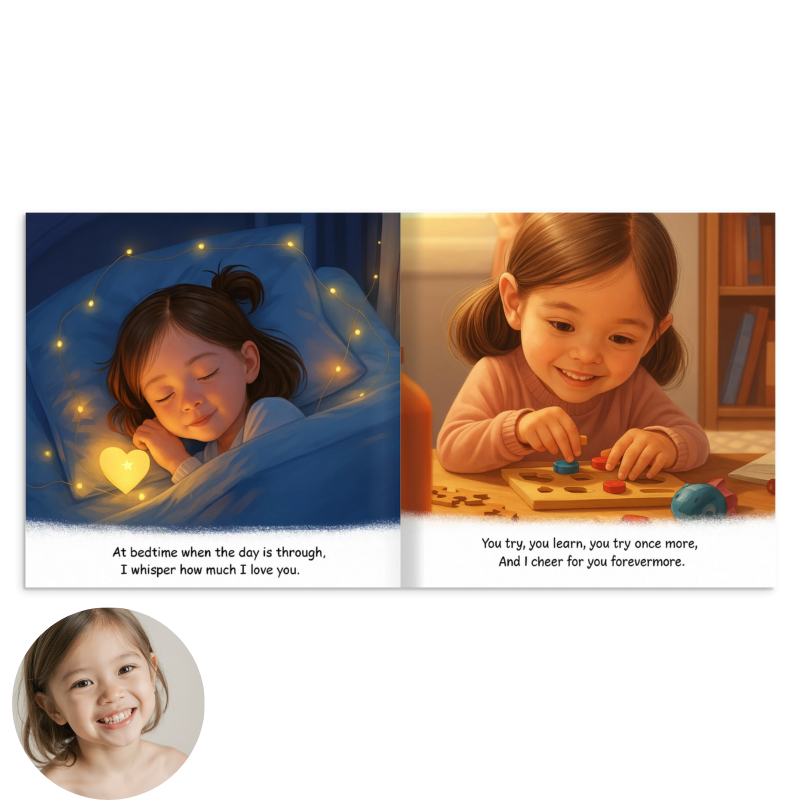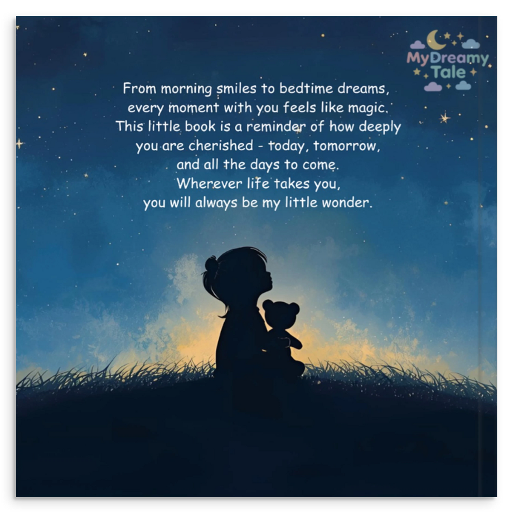Every page celebrates the precious, everyday moments that show her just how deeply she is loved. From morning cuddles to tiny victories, this story captures the warmth of your bond. A little book she’ll grow up cherishing - a story she’ll carry with her, wherever life takes her.