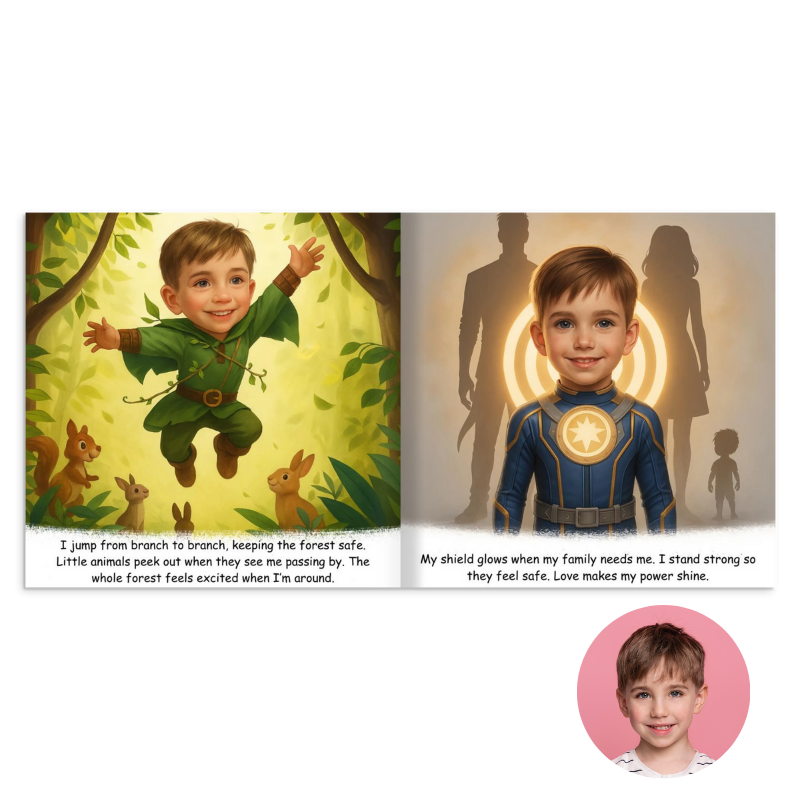 This personalized book takes your child on a journey through incredible challenges, mastering new powers and stepping into the role of a true superhero on every page.